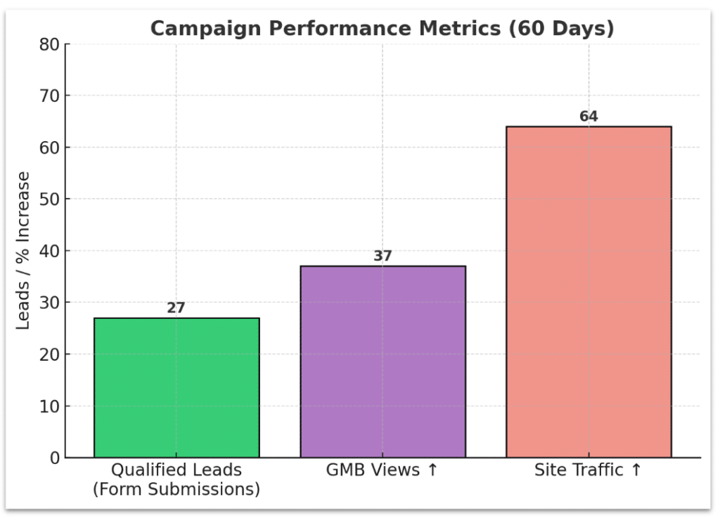 - Google Ads increased site traffic by 64% and GMB profile views by 37%