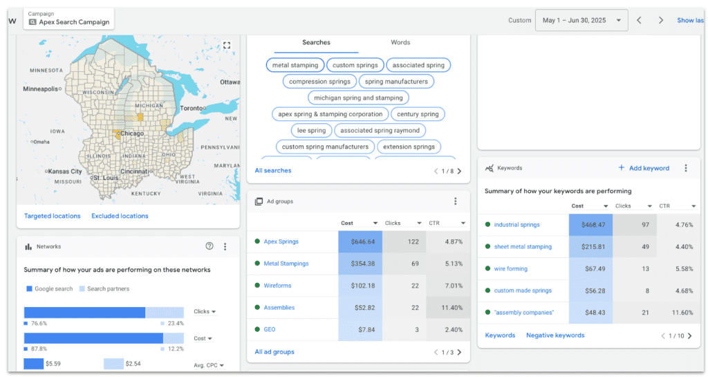 Apex Spring & Stamping is a Michigan-based manufacturer of custom springs, stampings, and wire forms for OEMs and Tier 1 suppliers. Their marketing manager wanted to expand their marketing efforts to paid ads, but there wasn’t internal buy-in from the leadership team.